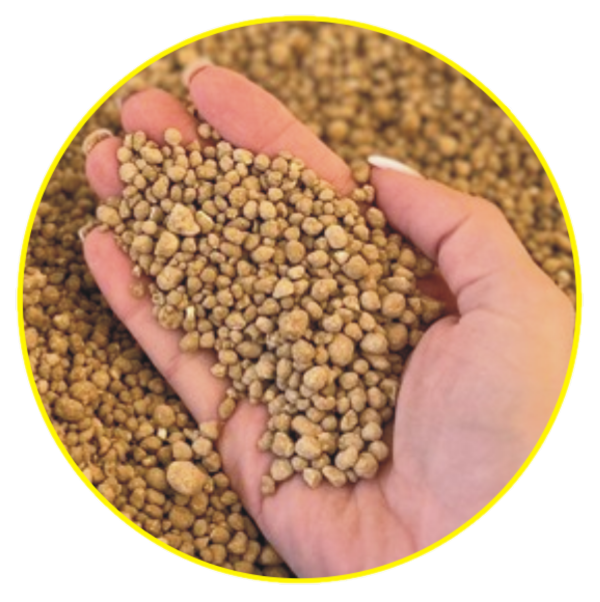 Jeho granulovaná forma usnadňuje aplikaci a rovnoměrné rozptylování.